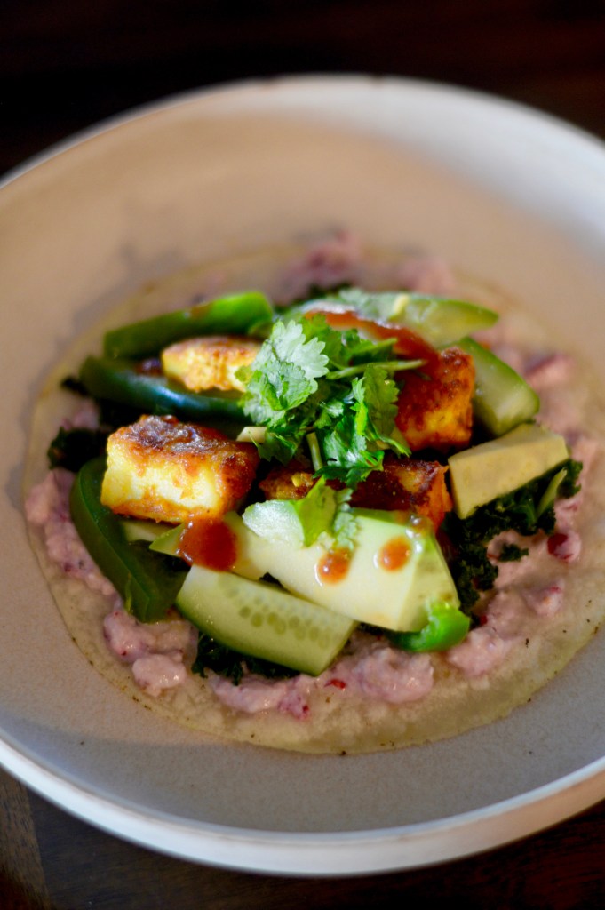 Now, just assemble your ingredients in the manner that you’d like on your tortilla of choice and then enjoy! I also ended up adding a little bit of avocado at the end, and enchilada sauce (as this is the only hot sauce I had on hand).